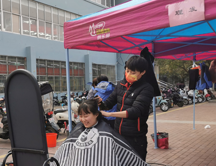 南区还新增免费理发项目,邀请专业的理发师傅,克服设备和场地限制,用娴熟的技术和热情周到的服务赢得了参与师生的一致好评。