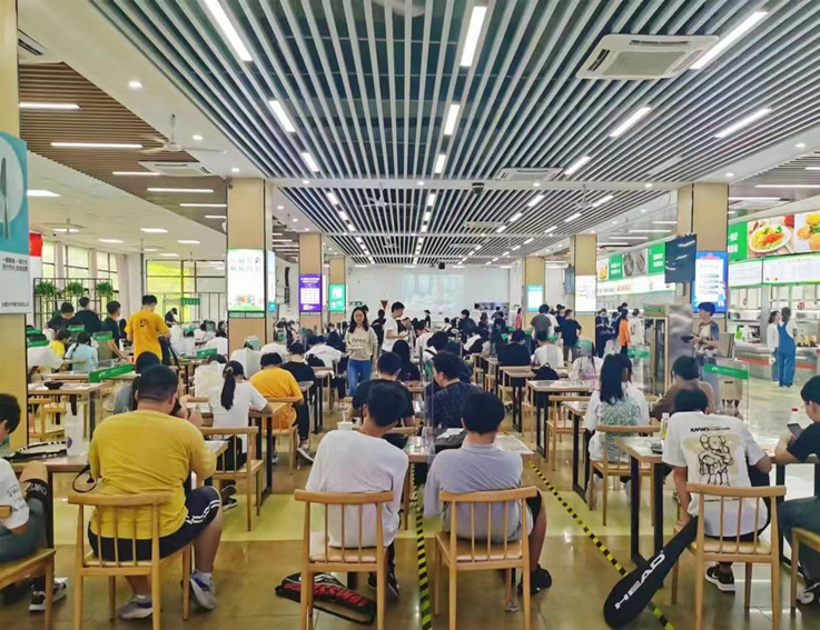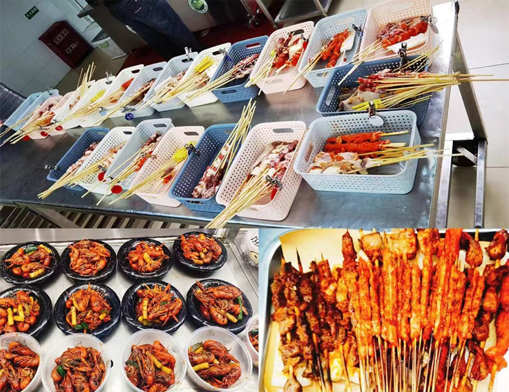 为丰富菜肴品种,开设烧烤、小龙虾等特色风味小吃,在食堂大厅内增设便民服务柜供师生存放饭盒、书包等物品。