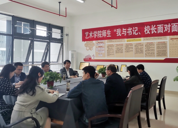 512日下午,校党委常委、副校长张亚新率校团委书记、后勤服务集团副总经理深入艺术学院开展第三期“我与书记、校长面对面”活动,艺术学院领导班子及全体专兼职辅导员参加。