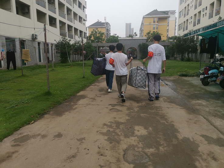 早上八点半,志愿者们有序前往5号公寓楼,熟练的搭建好帐篷,准备好小推车。面对来往忙碌不停的毕业生,志愿者们主动询问是否需要帮助,热情接过毕业生们手中大包小包的行李,并递上早已准备好的矿泉水,让毕业生们在炎热的毕业季感受一丝清凉。志愿者们以轮班的形式将活动一直持续了两天半。他们不言辛苦的辛勤工作值得被每一个人尊敬,也希望志愿者们能将这种以服务为乐的精神继续保持并发扬。