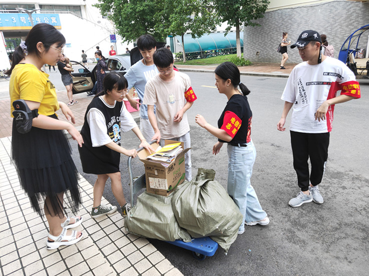 本网讯 硕果飘香季,毕业离校时,承载着母校的期盼与老师的嘱托,619日,电信学院22021届五百余名毕业生有序毕业离校,为共同营造文明、温暖的离校氛围,618日到620日,电信学院组织志愿者积极展开服务,表达对学长学姐们踏上新征程的祝福。