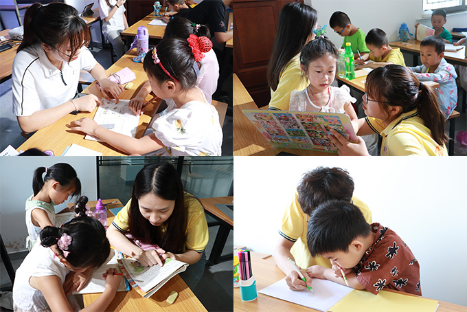 课程过程中,志愿者们带来了一堂堂生动形象,精彩丰富,风趣幽默的课程和活动,课堂氛围热烈。孩子们表现活跃,在课堂上踊跃发言,争先参与各项互动环节美术课上,孩子们积极参与,画出了一幅幅优秀作品:威严耸立的天安门、迎风飘扬的五星红旗、振翅飞翔的和平鸽等,以此献礼建党一百周年。同时,志愿者们与学生家长也保持了良好的互动,得到了家长们的一致好评和肯定。