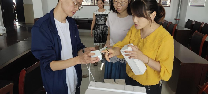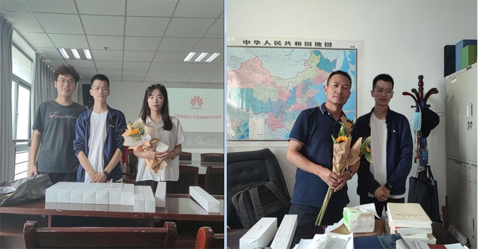 本次活动由学院联合安徽花粉高校俱乐部为各位教师带来节日祝福,学院17届毕业生校友周登波代表花粉高校俱乐部联合华为手机卖场为学院教师们开展手机、智能手表、平板贴膜、消毒,并为老师们赠送精美的贺卡、鲜花和伴手礼