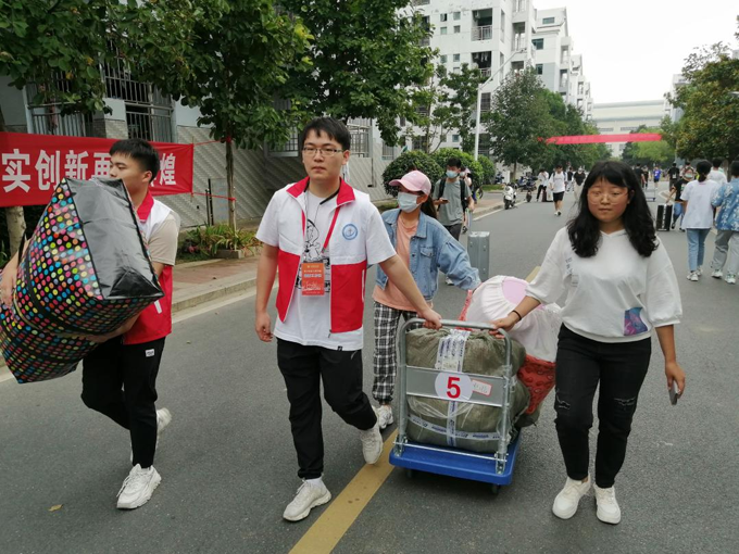 为保障高效、有序开展2021年新生入学工作,做好疫情常态化防控,电信学院在新生报到前积极组织准备工作,部署相关迎新活动,细化工作流程。全院上下齐心协力共同协作,力争以最高效和周到的服务,确保让新生顺利入校报到、让家长放心满意。从学校门口的电信学院党员服务站到学院报到处和宿舍楼服务点随处可见电信学院志愿者的身影,他们积极支持新生报到工作,自发参与到志愿服务中去,帮助新生搬运行李,引导新生报到办理入住手续,解决新生的疑问,共同做好新生入学一条龙服务,给新生多一份安全感、一份幸福感。