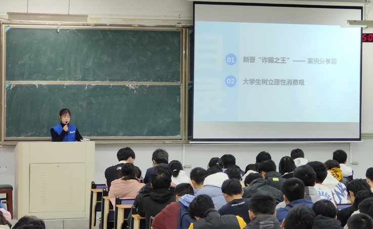 本网讯 为提高安全防范意识,杜绝校园诈骗事件的发生,12月1日,保卫处、电信学院联合公益组织“蓝马甲”在东辅楼2102教室为21级新生开展反诈骗宣讲活动。