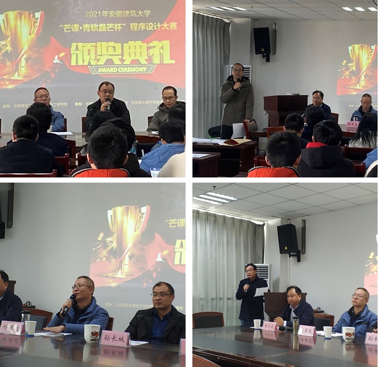 孙长城在致辞中指出,本届比赛使学生的计算机程序设计能力得到锻炼和提高,希望与芒课教育继续合作,把比赛越办越好。随后杨亚龙副院长、教师代表史东辉教授、学生代表刘文达等分别进行了发言、分享与互动交流。企业负责人关于竞赛服务和就业支持等工作做了介绍。