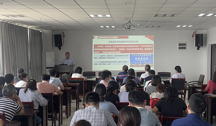 闵杰分别从实施审核评估背景与意义、本轮评估主要内容与方案、学院在评估中的工作重点、学习实施评估的工作要求等四个方面进行了宣讲,着重对学院在本轮评估中的工作中重点进行了详细的解读,并结合自身经历针对教师教育教学能力提升、课程思政教育教学水平提高等问题传经送宝