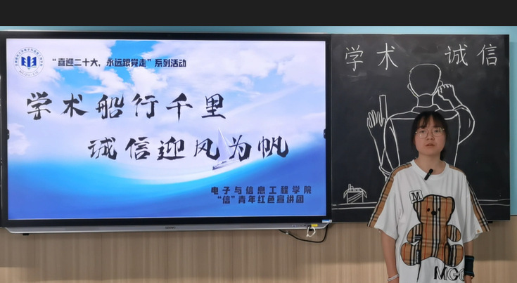 编者按:为迎接党的二十大胜利召开,同时,庆祝中国共青团成立100周年,电信学院团委召集学院优秀青年学子,组建“信”青年红色宣讲团。“信”青年谐音新青年,代表着拥有科学信仰、坚定信念和必胜信心的新一代青年。“信”也为诚信,是中华民族的优秀传统美德,更是电信学子的为人之本。自团队成立以来,紧密结合新时代特色,以青年学子的视角,一月一主题展开宣讲,切身体会和传承红色精神。