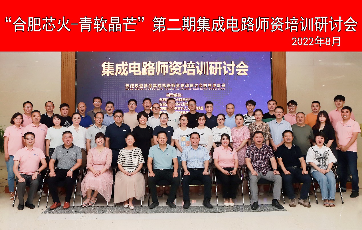 本网讯 为了推动安徽省集成电路人才供给及需求,加强集成电路产业人才的培养,为区域产业发展提供人力资源保障,2022年8月13日,在合肥国家芯火双创平台、安徽省半导体协会、安徽集成电路应用型本科人才培养联盟、合肥高新集成电路孵化中心的指导下,由安徽青软晶芒微电子科技有限公司主办的安徽省集成电路师资培训研讨会在高新区科技创新服务中心举行,电信学院副院长汪莉丽带领骨干教师应邀参加。