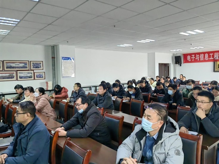 电信学院、机电学院、公管学院及安职校区计算机学院等一百余位教师线上线下参加了报告会。