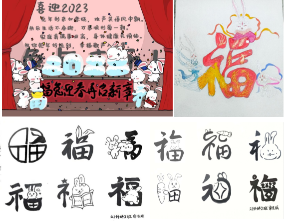 活动中,同学们热情高涨,精心创作,一笔一画间带着只只活泼可爱的福兔送福而至。这些灵动的福兔作品,既包含辞旧迎新的美好寓意,祥瑞平安的真诚祝愿,更展现了大展宏“兔”的热切期望,在传统底色上描绘新时代的色彩,在传统文化里表达新时代的愿景。
