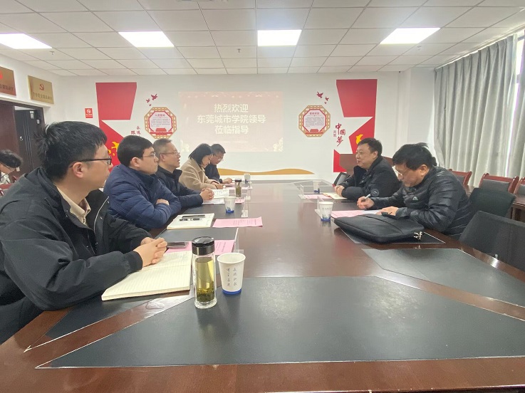 本网讯 2月22日,东莞城市学院建筑电气与智能化专业系主任李洪超、专业教师童珉一行2人来到电信学院开展建筑电气与智能化专业建设交流研讨。会议由副院长杨亚龙主持,学院副院长汪莉丽、智能控制工程系、实验中心负责人参加交流研讨。