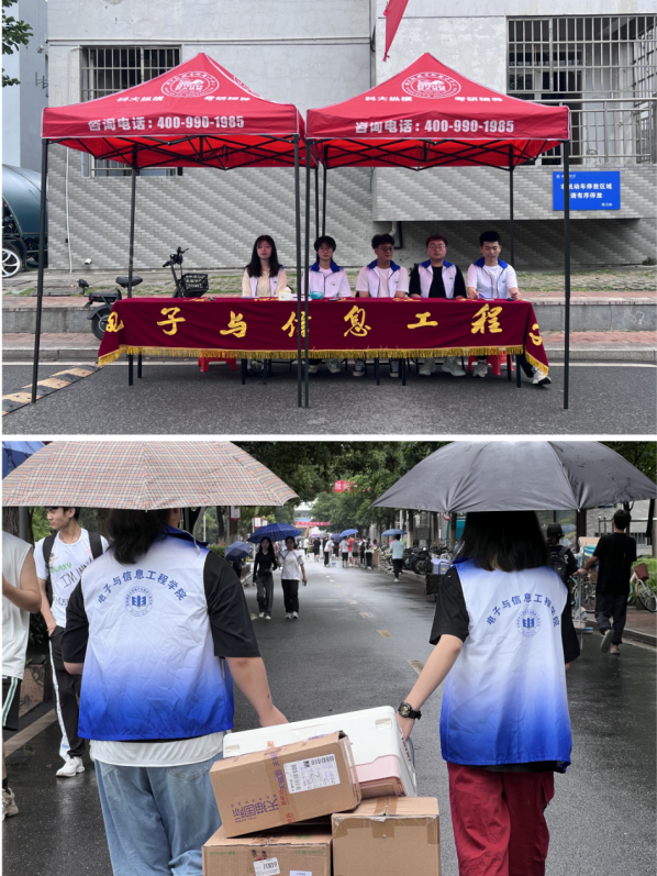 时光荏苒,骊声再起。带着母校和学院的祝福与期盼,学院2023届毕业生开始陆续离校。为了为毕业生顺利离校提供志愿服务,送毕业生们载梦扬“帆”再起航,志愿者们早早地前往毕业生公寓楼前,即使小雨蒙蒙,他们也提前搭建好帐篷,准备好推车和矿泉水,随时为帮助毕业生们文明离校奉献出自己的一份力量。面对整装待发的毕业生,志愿者们热情接过毕业生们大包小包的行李,递上早已准备好的矿泉水,有序地将行囊送到指定地点,以实际行动表达对毕业生们踏上新征程的祝福与不舍。