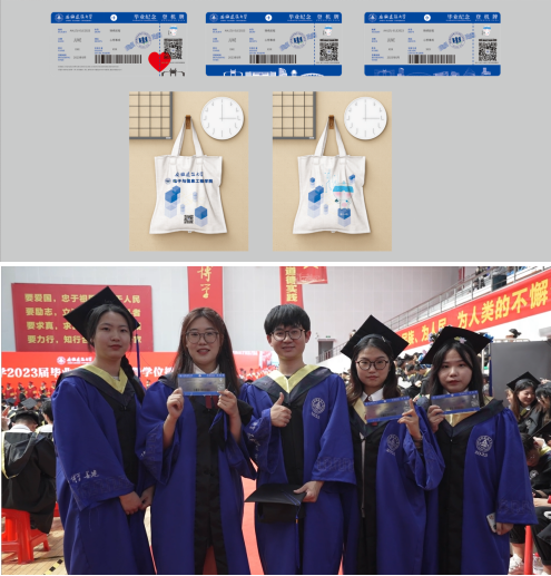 星河为路,此去乘风。在毕业之际,学院团委为每位毕业生组织设计定制了具有学校、学院特色且精美实用的毕业季定制帆布袋和毕业季创意纪念品定制“机票”,并在学位证、毕业证书发放时一并赠予毕业生。一是用于毕业生装放毕业证书、毕业照等毕业物品,方便毕业生携带,二是作为学院文化传承的方式为毕业生送去祝福和牵挂。一张张的机票和一件件背包可能承载着毕业生们的梦想,他们从安建大出发,前往世界各地,亦或许将来有一天,他们从世界各地前来,又会在此相聚,以学院特有方式给电信学子们的毕业季增彩添色。