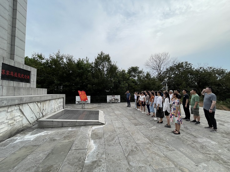 苏家埠战役纪念碑前,全体党员面对鲜红党旗,举起右手,紧握拳头,缅怀革命烈士,重温入党誓词,深刻感悟誓词信仰的力量,时刻提醒自己不忘共产党人的初心和使命。