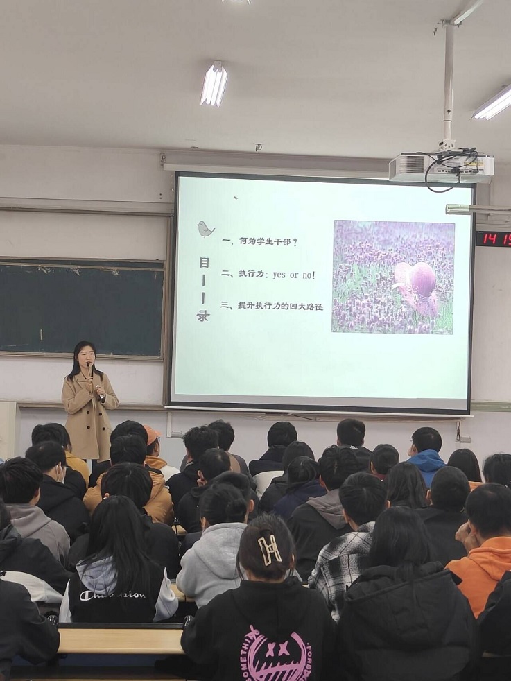 培训中,牛勤以《高校学生干部执行力的培养》为主题,针对当前新生干部在面对压力和困难时,存在畏难情绪和执行力度欠缺的现状,教育引导学生干部如何保持良好心态;她认为,执行力强的学生干部一般具有树立执行意识、养成执行习惯、保持积极心态、善于分解任务、注重过程控制等良好品质;对学生干部如何更好地服务同学,也针对性的提出了宝贵建议。