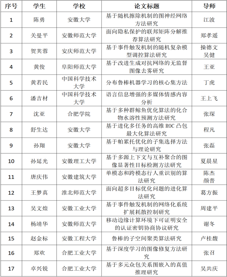 电信学子获安徽省计算机学会优秀硕士和本科毕业论文