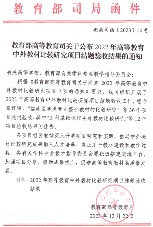 据悉,2022年高等教育中外教材比较研究项目共立项39项,经项目申请、专家评审,36个项目通过验收,其中12个项目验收结果为优秀。(/图:张鸿恺 审核:孙长城)