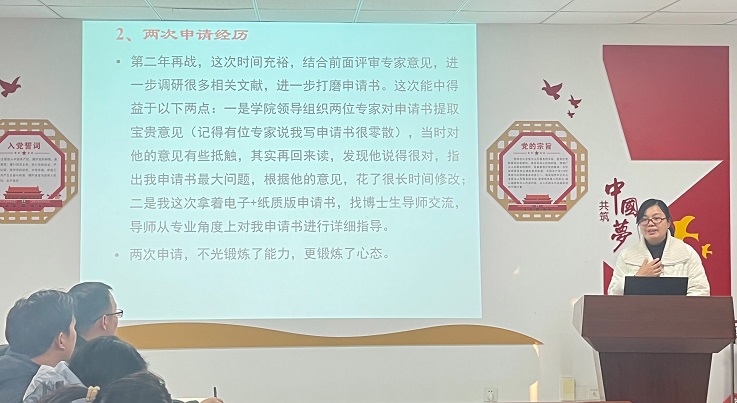 本次分享会,凝聚了青年博士投身科研工作的思想共识,增强了他们潜心科研、申报国家自然科学基金的信心,促进了学院科研工作的发展。(文/图:朱培灵 吴恒君 范雅琴    审稿:孙长城)