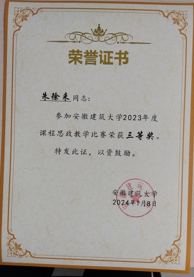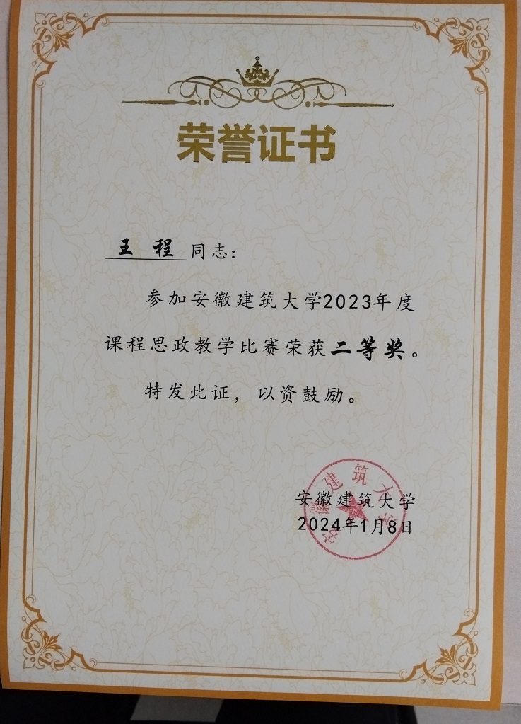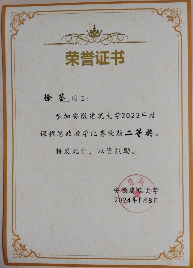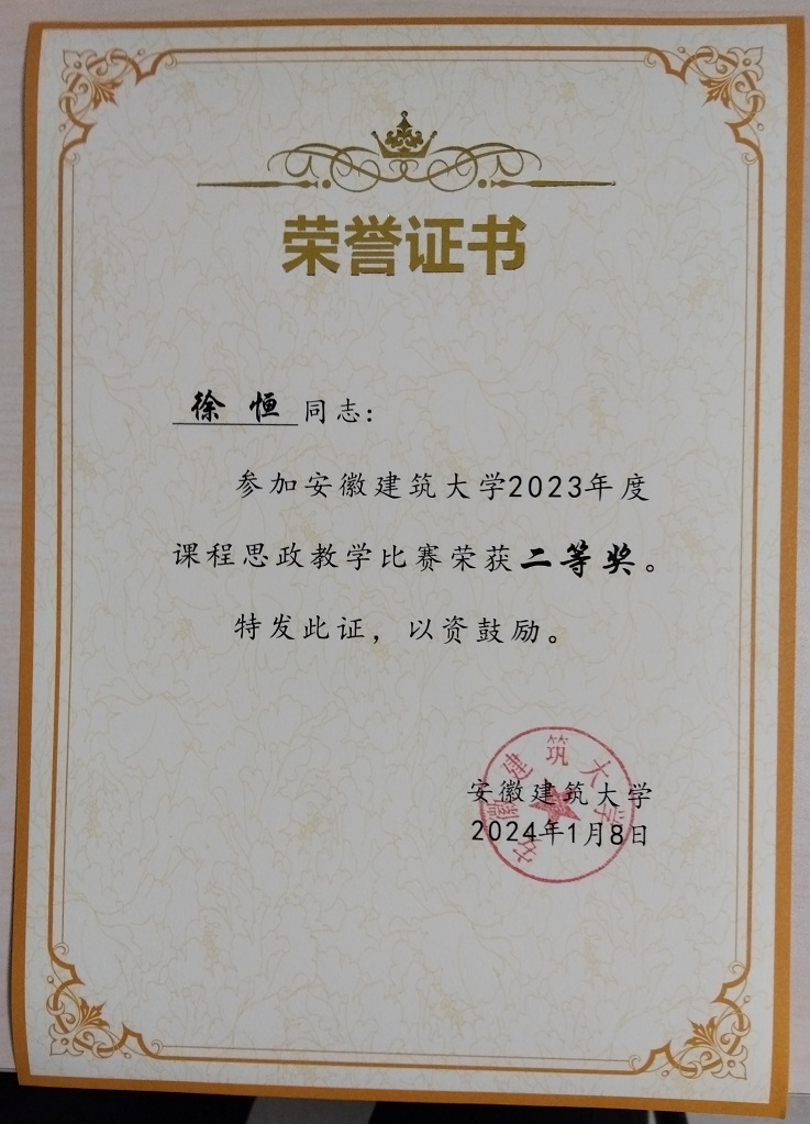 本网讯  近期,学校公布了2023年度校课程思政教师教学比赛结果,我院参赛教师在比赛中喜获佳绩。其中,徐恒、王程、徐荃、丁伟四位老师荣获二等奖,朱徐来老师荣获三等奖。