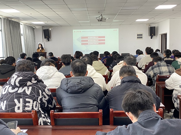 招聘会开始前,宏晶微电子科技股份有限公司招聘负责人通过企业宣传片让学生初步了解宏晶微电子公司,并详细介绍了行业前景、公司经营业务板块、职位需求及企业福利等。在宣讲结束后,进行了现场简历收集和提问环节。