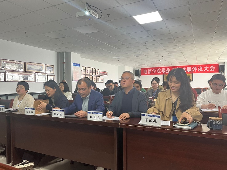 本网讯  为进一步健全完善学生干部选拔考核、培养使用机制,打造信念坚定、品学兼优、心系同学的优秀学生干部队伍,引导和鼓励学生“自我管理、自我服务、自我教育、自我监督”,近期,电信学院首届学生干部述职评议大会在学院会议室1106顺利举行。学院全体领导班子、专兼职辅导员及学生代表参加会议并担任评委。