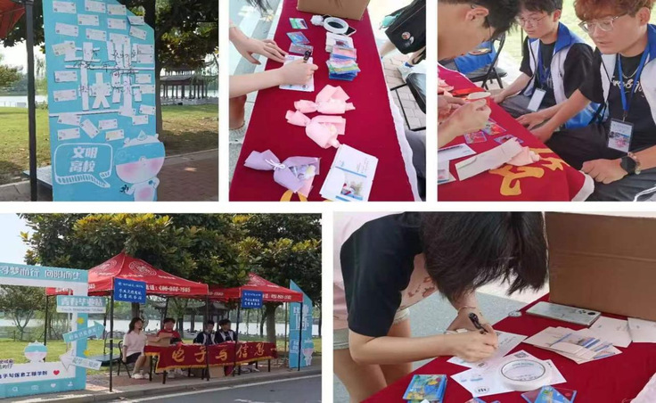 在毕业季期间,学院研究生会在毕业生宿舍楼下志愿者帐篷处举行了“交换祝福”毕业季线下打卡活动,毕业生通过明信片写下对同窗好友或母校以及几个月后入校新生的祝福,张贴在展板上合影留念,活动结束后由学院保存,待到新生迎新时可以发放给新生;非毕业生也可以在明信片上写下对毕业生的祝福,从而让这种成长的力量”不断传递下去,这一环节不仅增进了毕业生之间的友谊,也让他们感受到了来自母校的温暖和关怀。