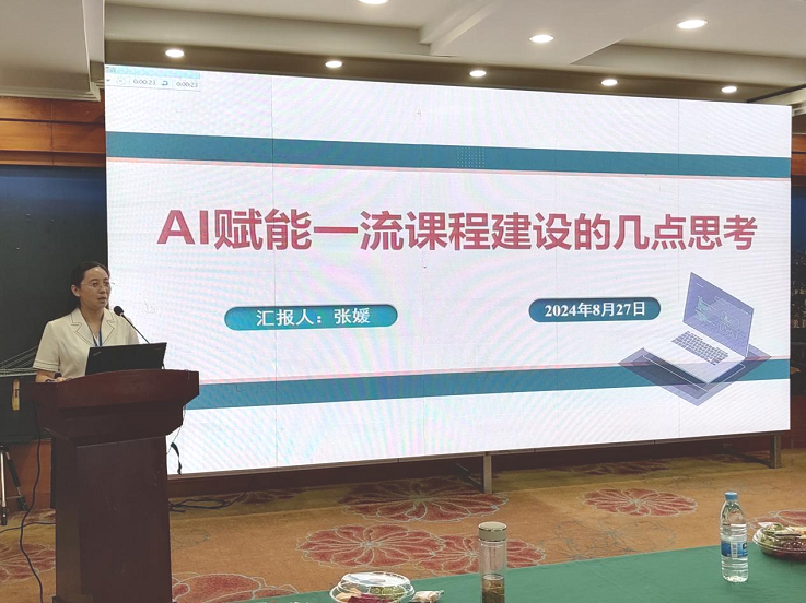在分组研讨环节,来自省内高校的15名专家学者分别就一流专业建设、一流课程建设、人才培养等主题作了报告,分享他们在专业和课程建设方面的经验与成果。电信学院张媛老师以《AI赋能一流课程建设的几点思考》为题做了做了报告分享,展示了电信学院在《微机原理与接口技术》课程方面的建设成果。与会专家就报告进行了深入的交流和讨论。