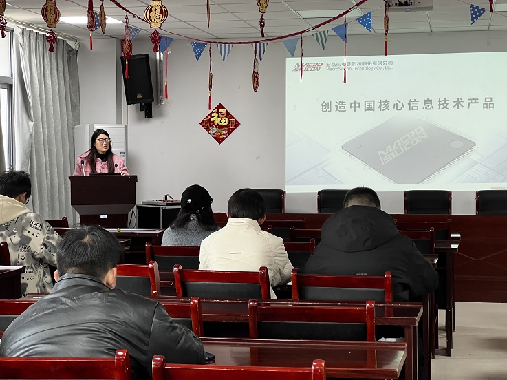 招聘会开始前,宏晶微电子的招聘团队通过播放企业宣传片,向同学们全方位展示了公司的发展历程、企业文化、业务范围和技术实力,让同学们对公司有了初步的认识和了解。随后,公司招聘负责人详细介绍了宏晶产品、产业发展、人才结构及分布以及后续的发展规划等。此次招聘涉及字集成电路设计工程师、模拟集成电路设计工程师、数字后端设计工程师、软件工程师、硬件工程师及企业管理岗等多个专业技术岗位,与电信学院的专业设置高度契合,为学院毕业生提供了丰富的就业选择。在介绍过程中,招聘负责人重点强调了公司对人才的重视和培养,鼓励同学们积极投递简历,加入宏晶微电子,开启职业生涯的新篇章。