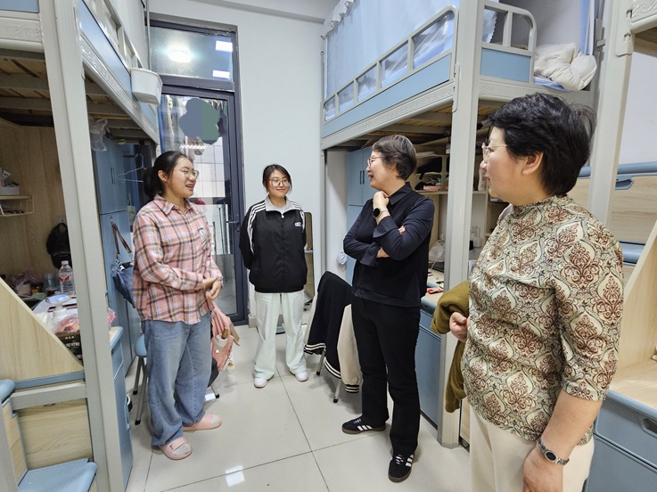 当晚,调研组走进学生宿舍,实地查看住宿环境,与同学们亲切交流。张润梅详细询问了学生的日常起居、校区通勤及课余生活情况,对学生们昂扬向上的精神状态、刻苦钻研的学习态度深感欣慰。