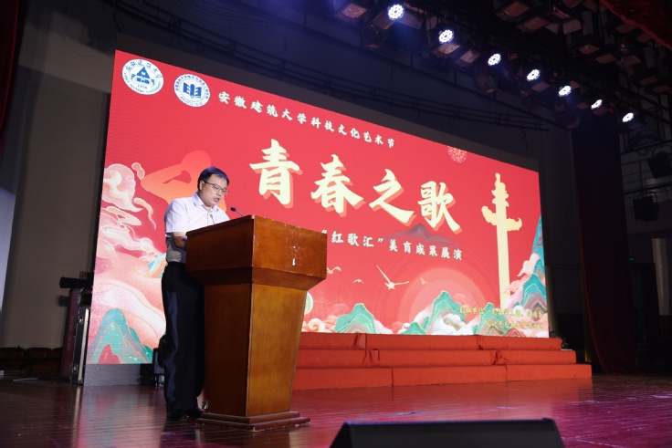 活动现场,大学生活动中心报告厅里座无虚席,红色旋律激荡人心,礼堂内座无虚席,校园文化氛围浓厚。校党委常委、副校长王佐才教授在开幕致辞中深情寄语全体师生,他指出,红色经典歌曲是红色文化的瑰宝,凝聚着革命先辈的崇高信仰与奋斗精神。他强调,本次活动以党的二十大精神为引领,一方面聚焦学生素质教育,助力学子在实践中突破自我、全面发展;另一方面着力培育审美素养,打造高雅校园文化,弘扬主流价值。他号召各参赛队伍以激昂歌声汇聚奋进力量,以艺术之美激发爱国情怀,共绘学校教育事业新篇。