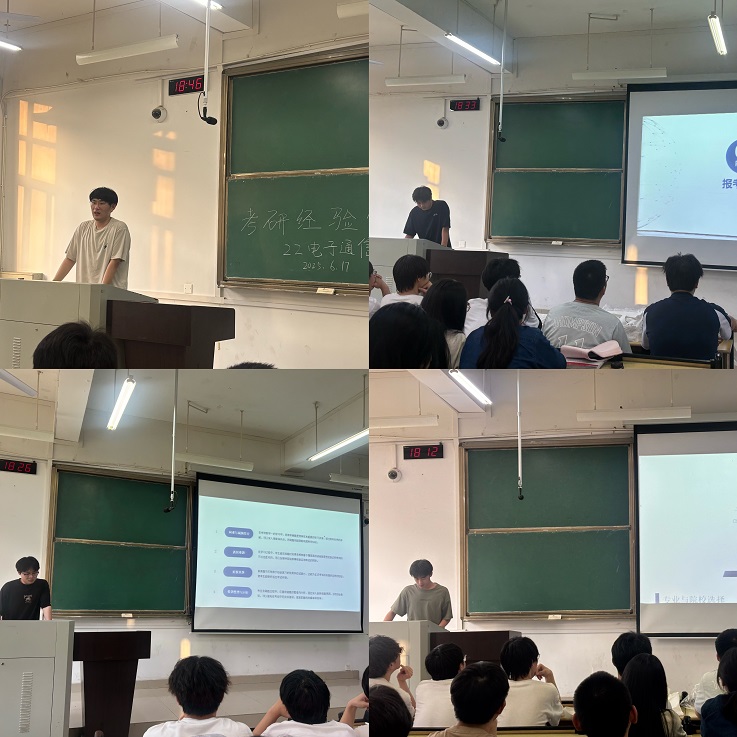 本网讯 为充分发挥党支部战斗堡垒和党员先锋模范作用,切实服务学生成长成才需求,在2026届考研即将拉开序幕的关键阶段,电子与信息工程学院学生第一党支部于近日精心策划并成功举办“研途领航,聚力成长”考研经验分享主题党日活动。本次活动特邀支部内2021级通信工程专业成功“上岸”的优秀学生党员朱健、张龙等担任主讲,为2022级通信工程专业的学弟学妹们带来了一场诚意满满、干货十足的考研经验盛宴。
