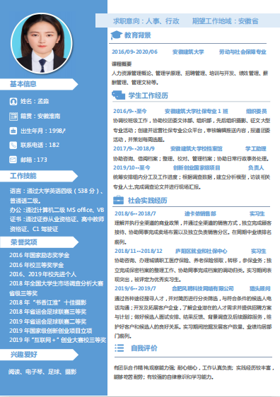 4月份比赛方案公布后,受到毕业班学生的高度关注,大家纷纷利用这次机会修改简历,在老师的指导下交出高品质作品。通过为期两个月的准备和筛选,层层选拔,师生共评,最终有12位同学的简历脱颖而出,土管专业吴玉青同学和社保专业孟淼同学的作品荣获一等奖,周书悦、夏宇、胡晶晶等同学获二、三等奖。
