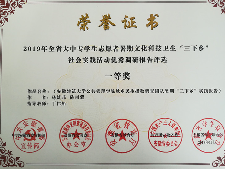 2019年,申报国家社科基金项目上会3项,获得国家社科基金项目1项;获三类以上科研项目18项,横向项目14项。《安徽乡村人口变动规律及发展趋势研究》报告获安徽省卫生健康委部采纳,并获得安徽省社科联一等奖;撰写的《2019年安徽民生发展调查研究报告》提交到国务院发展研究中心,为国家和安徽省制定十四五发展规划提供依据。(审稿:李道先)