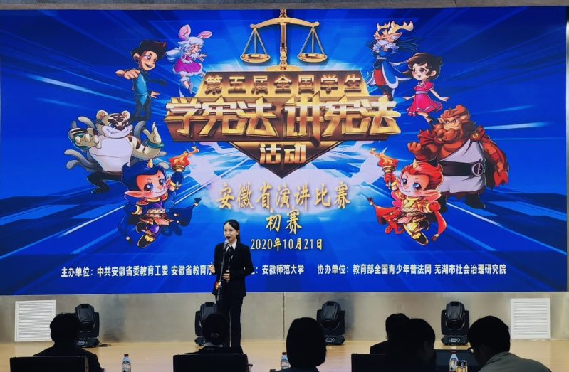 本次大赛分为小学、初中、高中和大学四个组别。来自省内包括安徽大学、中国科学技术大学、合肥工业大学等在内的24所高校学生代表参加了大学组比赛。公管学院党委书记李道先带队,牛勤、胡安琪两位指导老师随队指导,经过初赛和复赛的激烈角逐,陈纪鞍同学以总分第二的优异成绩,喜获学宪法 讲宪法知识竞赛安徽省一等奖;牛丽群获得学宪法 讲宪法演讲比赛安徽省三等奖。