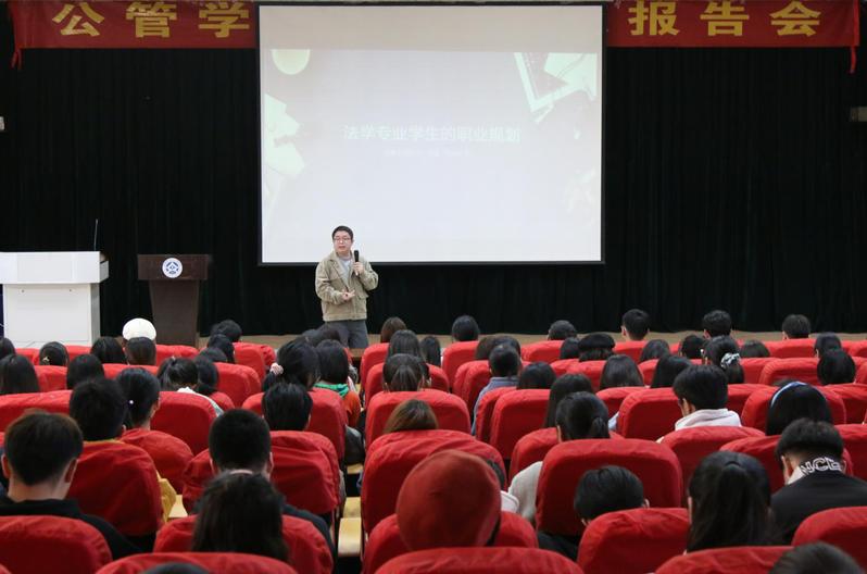 张超结合自身考研经历、创业过程进行分享交流,从“法学的前景与钱景”、“职业素养的养成”和“大学生活应该如何过度”等三个方面对法学就业前景、在校学习计划和能力培养进行了阐述。同时,结合当前法律就业环境、职业能力要求、薪酬能力匹配度等方面,对学生提出了可行性建议。报告后的互动环节,大家争先恐后、积极发言、气氛热烈,张超现场为学弟学妹答疑解惑。