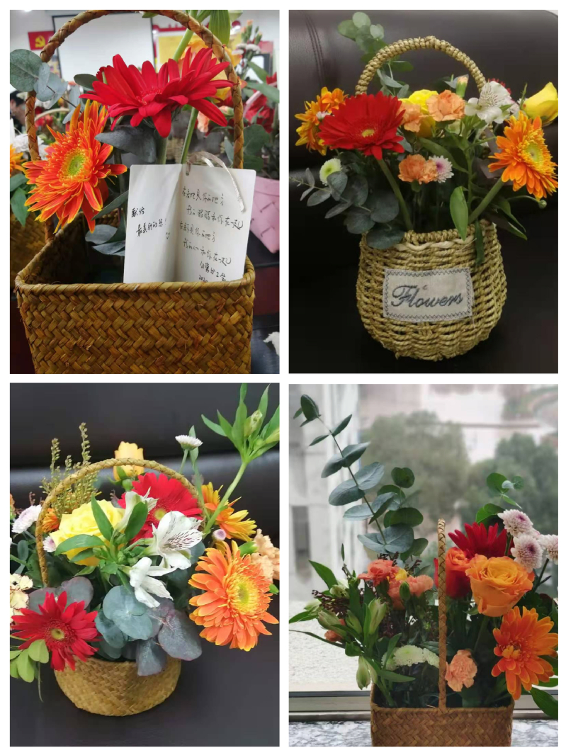 如何让不同品种、不同色彩的鲜花汇聚成为一个个美丽的花篮,看似简单,但要真正插成一件好的作品却非易事。插花是一门技术,也是一门高雅且富有内涵的艺术,更是一门有关花艺花语的学问。活动还邀请了专业花艺老师亲临现场详细讲解不同种类鲜花的知识及插花方法,带领大家走进插花艺术的海洋,领略不一样的插花艺术,大家在学习插花创作中陶冶情操,提升自然审美品位。