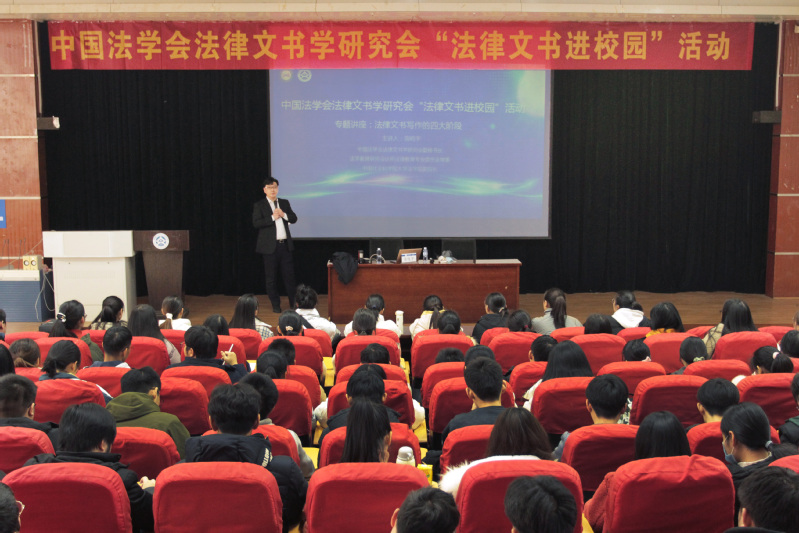 本网讯 12月25日,公共管理学院邀请中国法学会法律文书研究会副秘书长、中国社会科学院大学法学院副院长苗鸣宇开设以“法律文书写作的四大阶段”为题的“法律文书进校园”讲座。学院班子成员、法学系专业教师以及专业学生参加了讲座活动。