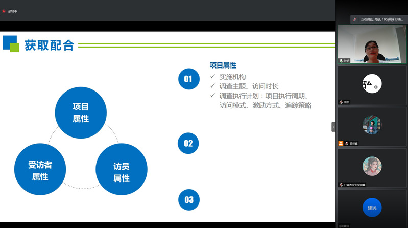 据悉,2021年民生调查问卷涉及就业、教育、医疗、住房、养老等11个方面180余个问题。本次线上培训与动员大会从下午1时开始至下午6时才圆满结束,历5个小时。内容丰富、主题明确、安排紧凑。通过此次会议,学生调查员对调查任务有了清晰的了解,必将以实事求是的精神对待此次调查任务。(文/图:宋平凡;指导老师:蔡弘;审稿:丁仁船)
