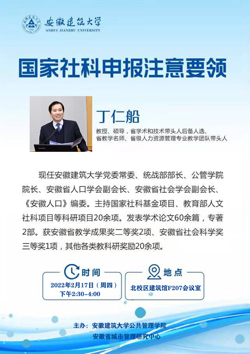 本网讯  217日下午,公共管理学院“2022年国家基金申报辅导系列讲座”第三讲在北校区建筑馆F209会议室举行。公管学院教授丁仁船作国家基金申报辅导报告。公管学院全体青年博士参加了本次讲座。