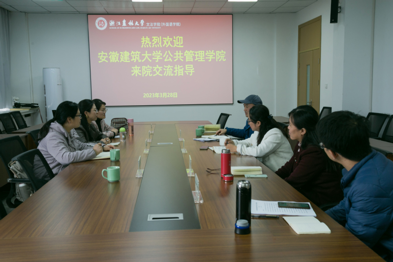 随后,公管学院一行来到浙江农林大学文法学院。该院副院长陈艳君对公管学院一行表示热烈欢迎,并详细介绍了浙江农林大学文法学院五大学科建设情况。该院各学科负责人就城市管理本科专业的办学目标、特色凝练、人才培养等介绍了宝贵经验。双方在虚拟教研室建设、硕士人才培育、专业师资支持等方面达成合作共识。