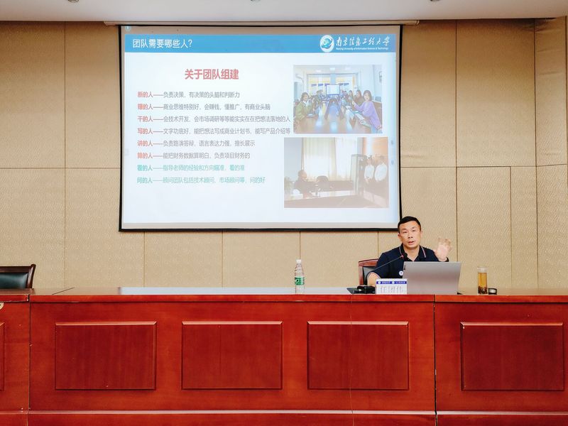 本网讯 为提升大学生创新创业能力、增强创新活力,营造以赛促学、以赛促教、以赛促创的学科竞赛氛围,4月12日,教务处(创新创业学院)主办、公管学院承办的“互联网+”创业大赛项目辅导讲座在北校区图书馆二楼报告厅顺利开展,本次讲座特别邀请南京信息工程大学教务处创新创业教育中心任团伟主任莅临指导。讲座由学院党委副书记江侠主持,公管学院报名参赛的项目团队核心成员及指导教师等近200余名学生参加。