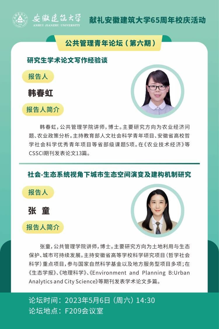 本网讯 值我校65周年校庆之际,为搭建师生学术交流平台,扎实研究生写作能力,5月6日下午,公共管理学院于北校区F209举办了公共管理青年论坛第6期。论坛邀请了公共管理学院青年教师韩春虹博士和张童博士进行了学术论文写作经验分享。学院全体研究生参加论坛。