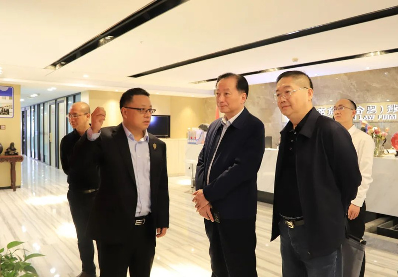 北京京师(合肥)律师事务所主任朱政带领我校一行参观了律所的办公场所、党建文化长廊、律师解压室等特色区域,详细介绍了北京京师(合肥)律师事务所的发展历程、组织架构、党的建设、社会责任履行等方面情况,并表达了与建大建立战略合作关系的迫切意愿和详细思路。