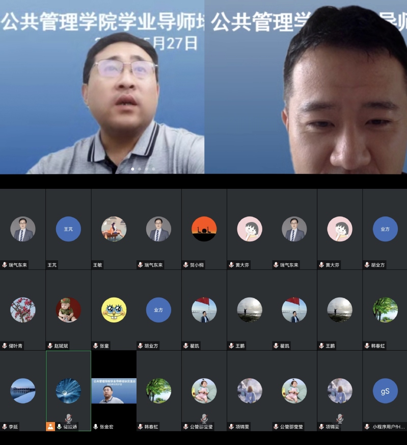本网讯 为强化教学质量文化建设,赋能学业导师工作质效,促进高质量人才培养,5月27日上午,公管学院在线举办学业导师培训交流会,各专业系主任、学业导师等30多名教师参加活动,副院长连瑞瑞主持会议。