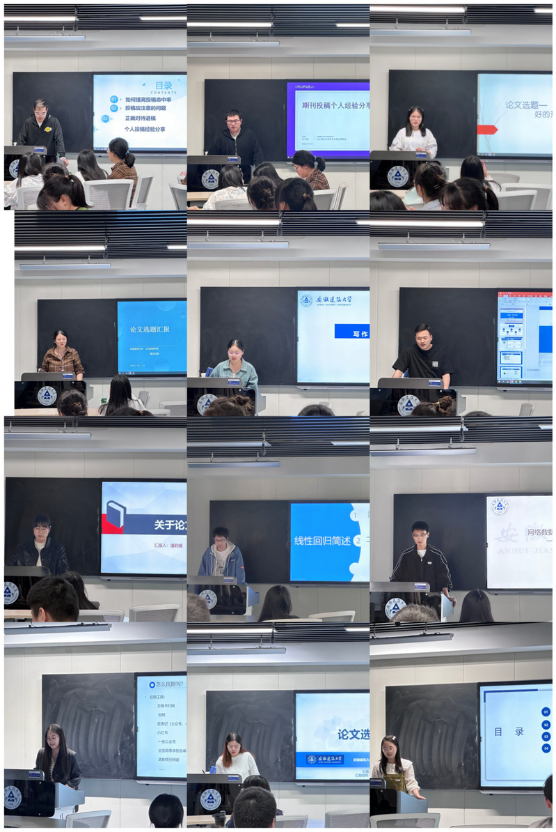 周子羽等以如何选取期刊、如何获取关键信息以及如何提高投稿命中率为重点分享了论文投稿经验;梁雨雪各自论文为例分享了论文选题经验;潘莉媛等介绍了Gephi数据可视化方法、SPSS高级统计方法、数据包络分析DEA)方法以及Malmquist指数模型的应用。