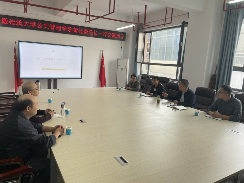 山西农业大学公共管理学院班子成员热情接待了学院一行,详细介绍了山西农业大学公共管理学院的办学历史、学科建设和研究生教育的基本情况。黄佳豪介绍了学院近年来在专业和学科建设方面所做的工作和取得的成绩。随后,双方参会人员就如何更好地开展专业和学科建设等方面工作进行了广泛深入的交流。