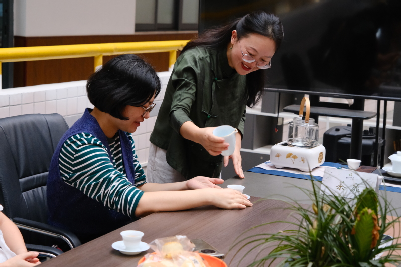 静品光阴,茶韵悠然活动在茶的芳香中拉开帷幕,学院邀请马克思主义学院高级茶艺师张云老师做茶文化交流和茶艺展示,张老师从识茶、品茶、茶道健康等方面详细讲解了茶文化相关知识,介绍了茶盘、公道杯、品茗杯等茶具的用法,示范了洗茶、冲茶、淋罐、洒茶等茶艺技巧。在张老师专业细致的讲解下,大家兴趣盎然积极互动,体验冲泡技巧,习得茶道礼仪,在轻松愉悦的氛围中,共同体验了一次难忘的茶文化之旅。