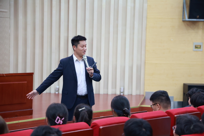 随后,黄冬磊谈到了专业与现实的差异问题。很多专业的学生在校园里学到的往往是理论知识,然而,当他们步入社会后,会发现现实工作中所面临的问题与校园中所学的知识存在一定的差异。理论知识是基础,但仅有理论知识是远远不够的,学生还需要在实践中不断积累经验,提高自己的综合能力。他向同学们分享“飞轮效应”,即做一件事要学会在“喜欢”、“擅长”和“意义”中找到三者的交集处,这样才能在这个领域里像飞轮一样越走越快越走越远。