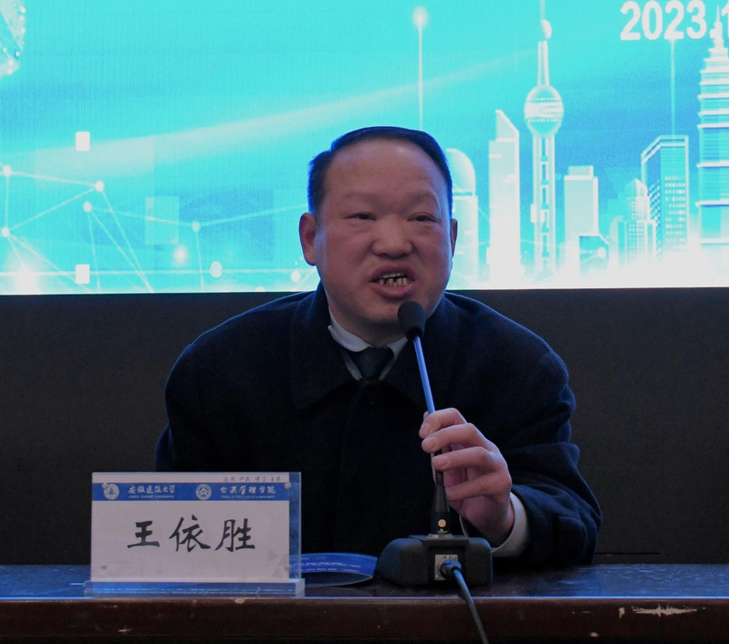 公管学院教授、安徽省建筑房地产法律研究中心主任袁家德对王依胜法官的主旨报告进行点评总结,同时介绍了“中心”的成立背景、发展历程以及近年来在课题研究、资政建言等方面取得的成果。袁家德表示,建大法学的特色是建筑法学,建筑房地产法律研究中心将依托建大的工程技术、造价等人才优势,坚持专业交叉、理论与实践结合原则,为住建领域法律服务和人才培养贡献力量。